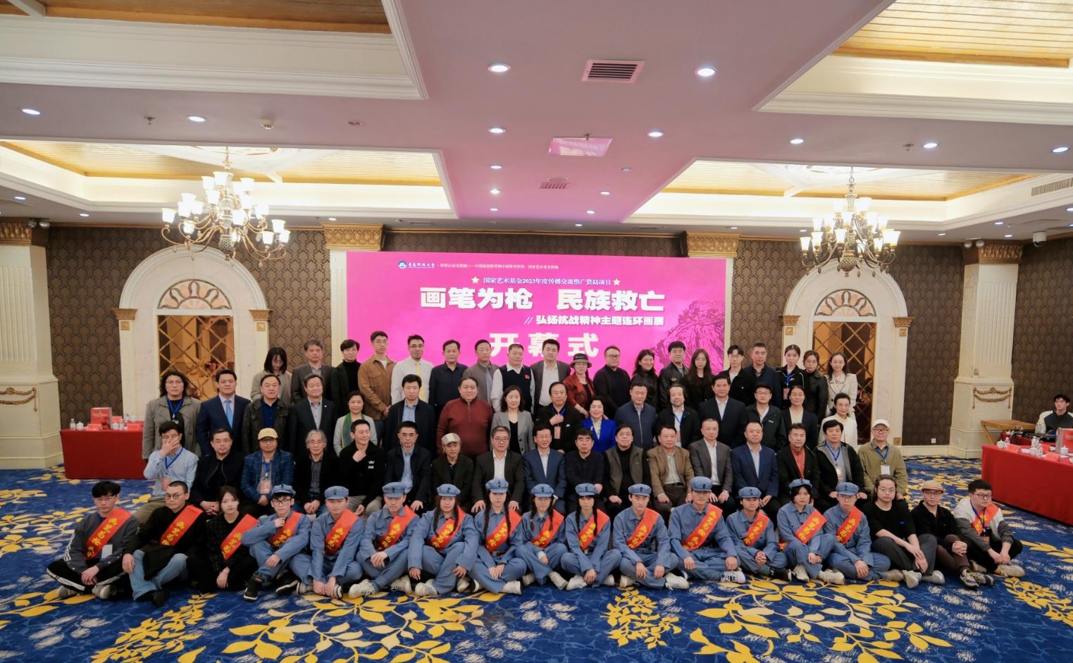 5月4日,我院视觉设计党支部书记、系主任禹青老师主持获批立项的国家艺术基金项目“画笔为枪 民族救亡—弘扬抗战精神主题连环画展”开幕仪式在青岛丽晶大酒店成功举行。来自省内外领导和嘉宾共100余人出席了本次活动。