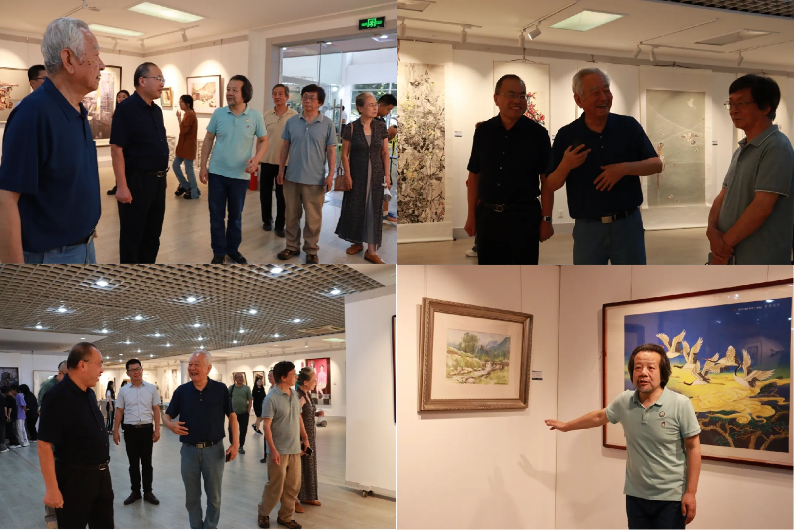 美术馆,参观建院60周年艺术作品展,并交流学习。参观过程中,领导及嘉宾认真欣赏每一幅精湛的作品,深刻品味作品背后的意义,感悟艺术家们的笃定之心和奋发之志。
