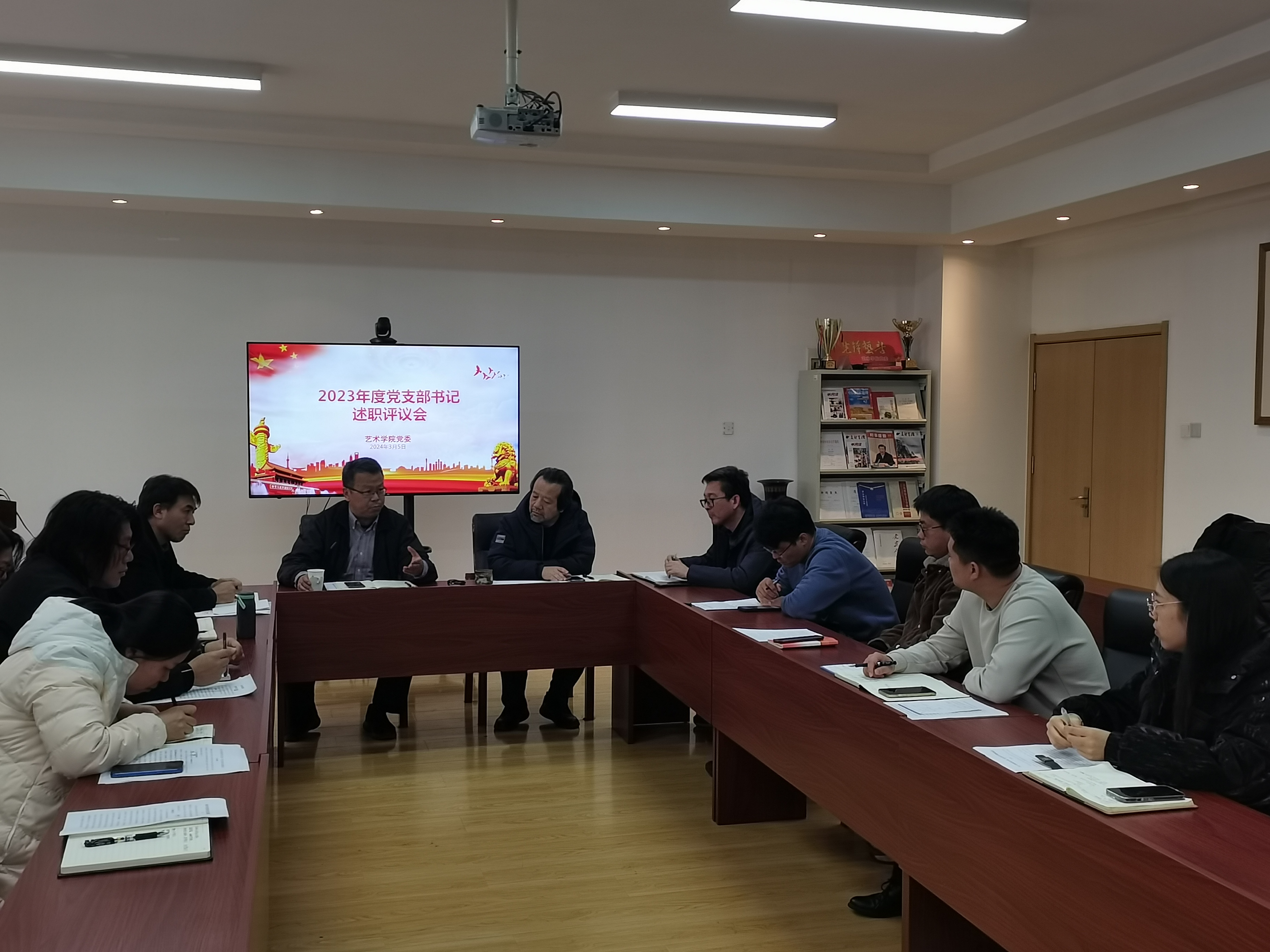 在213会议室组织召开2023年度党支部书记述职评议会。学院院长李宏文、党委书记刘庆、学院党委委员和全体党支部书记参加会议。学院党委书记刘庆主持会议。