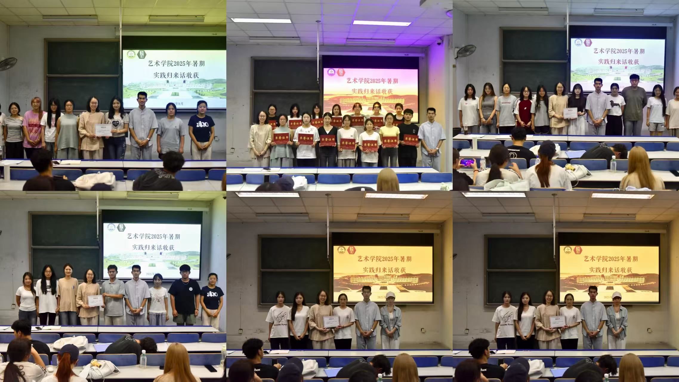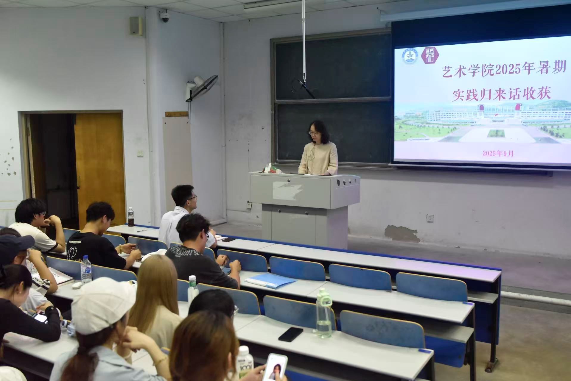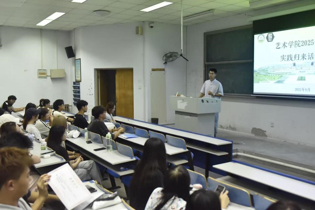 于弘毅楼E区205教室举办“实践归来话收获”暑期社会实践成果分享会,系统总结学院暑期社会实践工作成效,展现艺院学子实践风采。学院党委副书记丁一宁、2024级本科生辅导员杨橙、各实践队伍成员代表共100余人参加活动。