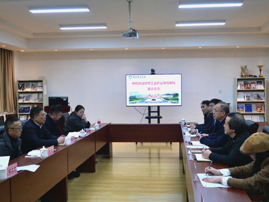 近日,毕节工业职业技术学院组建由党委书记周杰、副院长吴家文、书记陈忠、主任曹婷钰、科长胡逸鲲、专业带头人段春梅组成的交流团队来我院交流访问。学校党委常委、副校长丁林教授出席座谈会。
