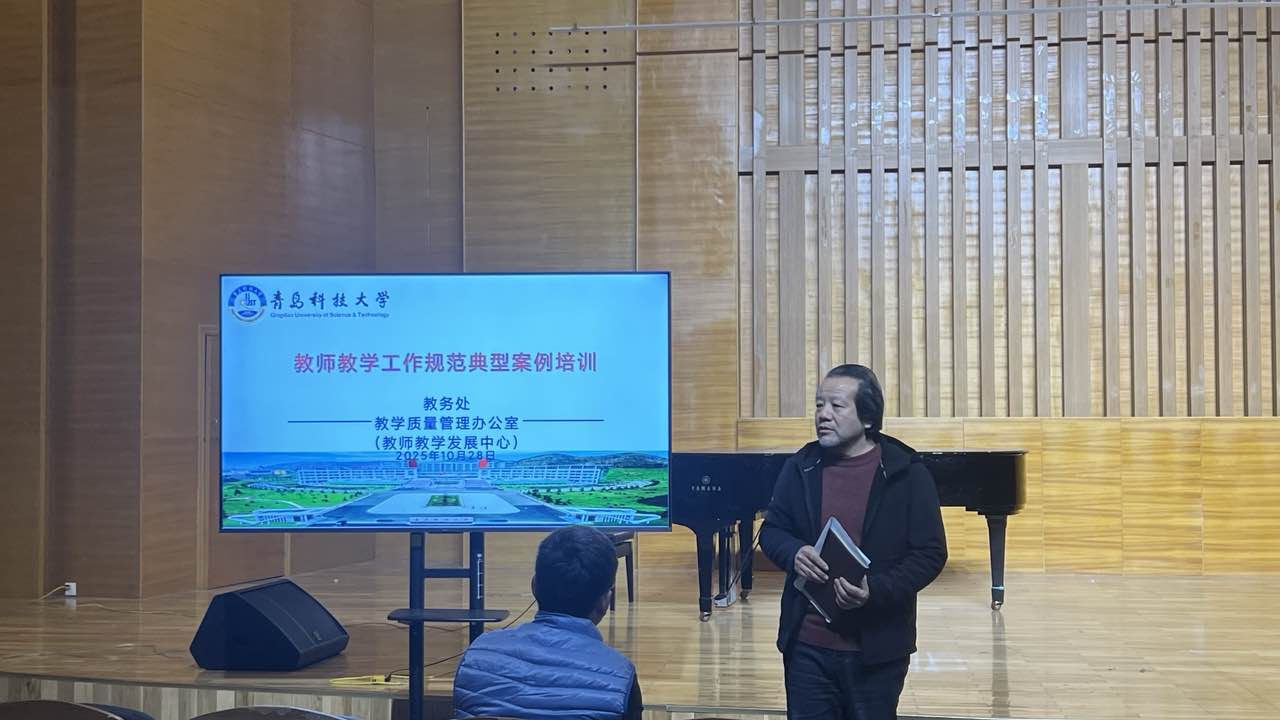 在音乐厅召开全体教职工大会,学院领导班子、全体教职工参会,会议由党委书记刘庆主持。