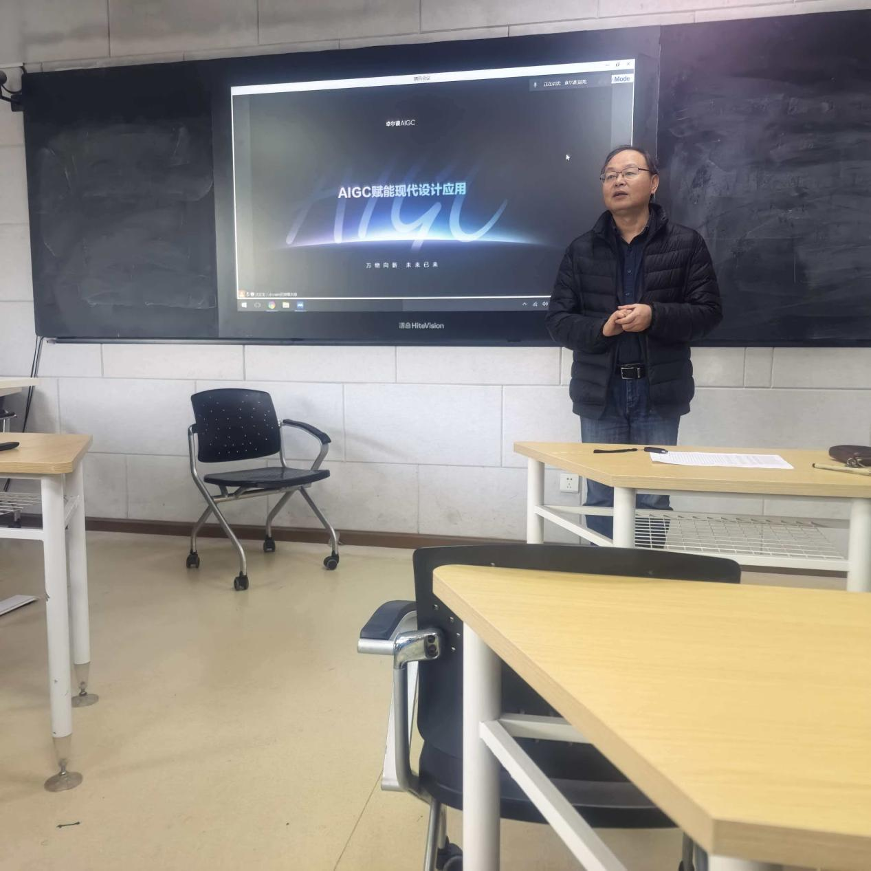 11月18日下午,工业设计系开展了“AIGC赋能现代设计应用”报告会暨2025级工业设计新生见面会。校外专家、卓尔谟科技有限公司沈应龙总监、机电学院王帅老师、工业设计系全体教师及大一新生参会。