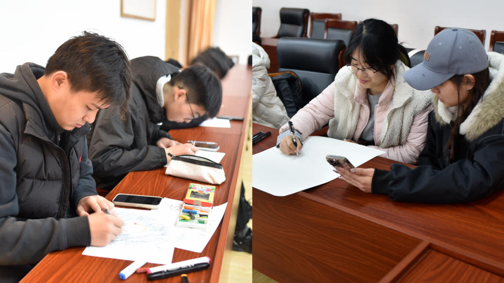 活动分为“独绘心语”与“协绘同行”两个环节。在轻柔的背景音乐中,同学们静心投入单人绘画创作,以色彩、线条勾勒内心情绪,将抽象思绪转化为具象作品,在独处创作中梳理心绪、释放压力,与自我情绪平和对话。