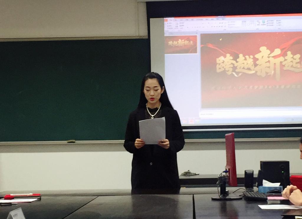 研究生会的批复及第二届研究生会成员名单,共有30余名同学成为了新一届的研会成员,并且为部长及学生干部颁发聘书。随后,第二届研究生会主席刘杨莘彧上台发表就职演说。她表示在接下来的一年中,一定不负大家的期望,牢记为同学们服务、为学院服务的初心,在努力做好本职工作的同时为学院的建设和发展做出自己应有的一份贡献。最后,党总支副书记兼副院长刘名森做总结讲话。他首先肯定了上一届研究生会的各项工作和取得的成绩,其次对新一届的研究生会提出了三点问题:一是如何坚守岗位,希望大家不忘初心,积极进取;二是如何提升工作水平,希望大家充分发挥学院科研优势,营造浓厚学术氛围;三是如何开展有吸引力的活动,希望大家与时俱进,务求实效,丰富课余文化生活。