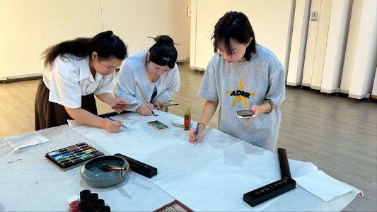 活动现场气氛热烈,色彩斑斓的颜料与充满创意的画笔交相辉映。同学们全情投入,每个人都以饱满的热情在长卷上挥洒着自己的灵感。他们用熟练的笔触勾勒出心中的祖国山河,那鲜艳的牡丹、雄伟的长城、壮丽的校门,无不展现着他们的爱国情。