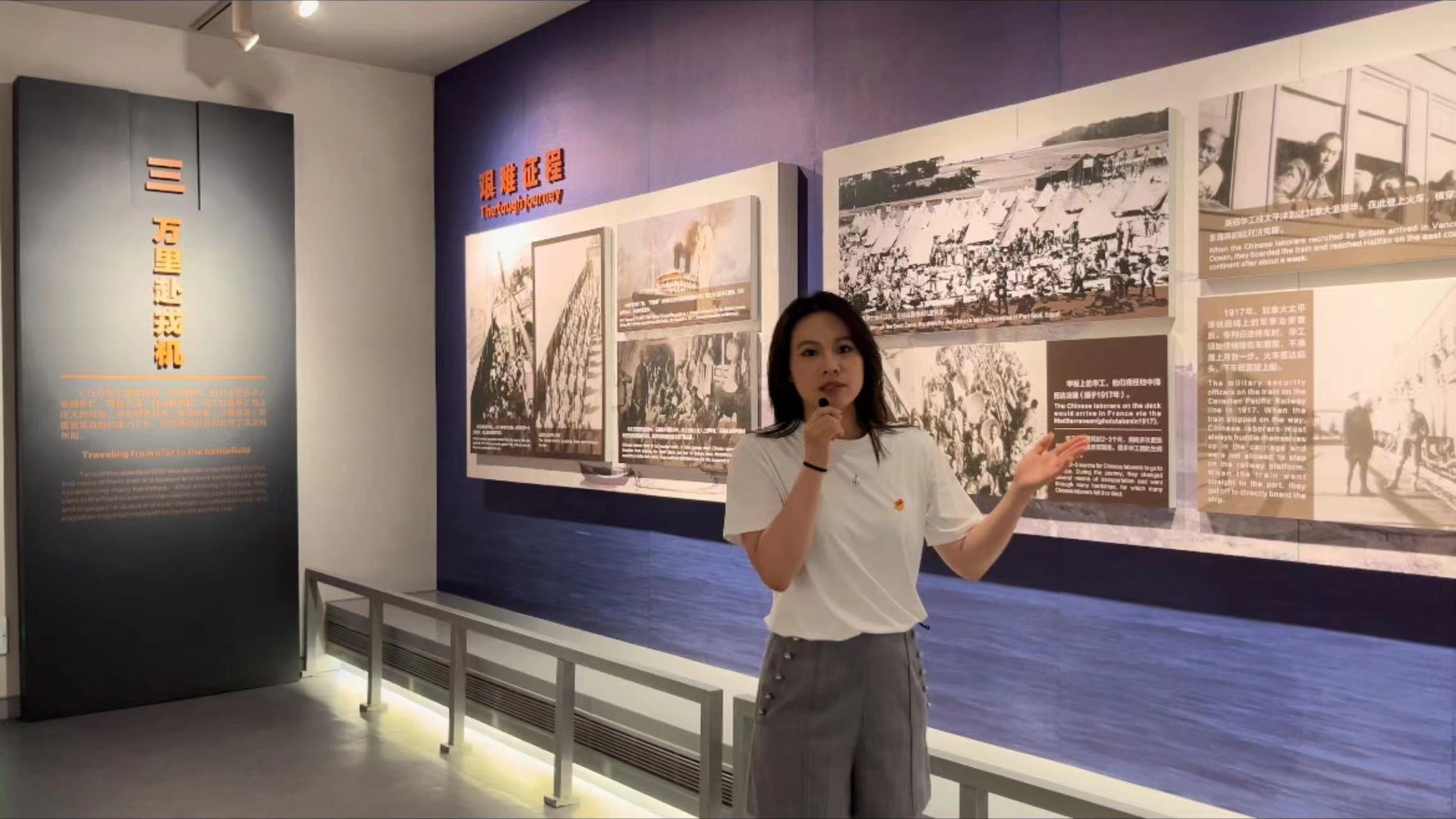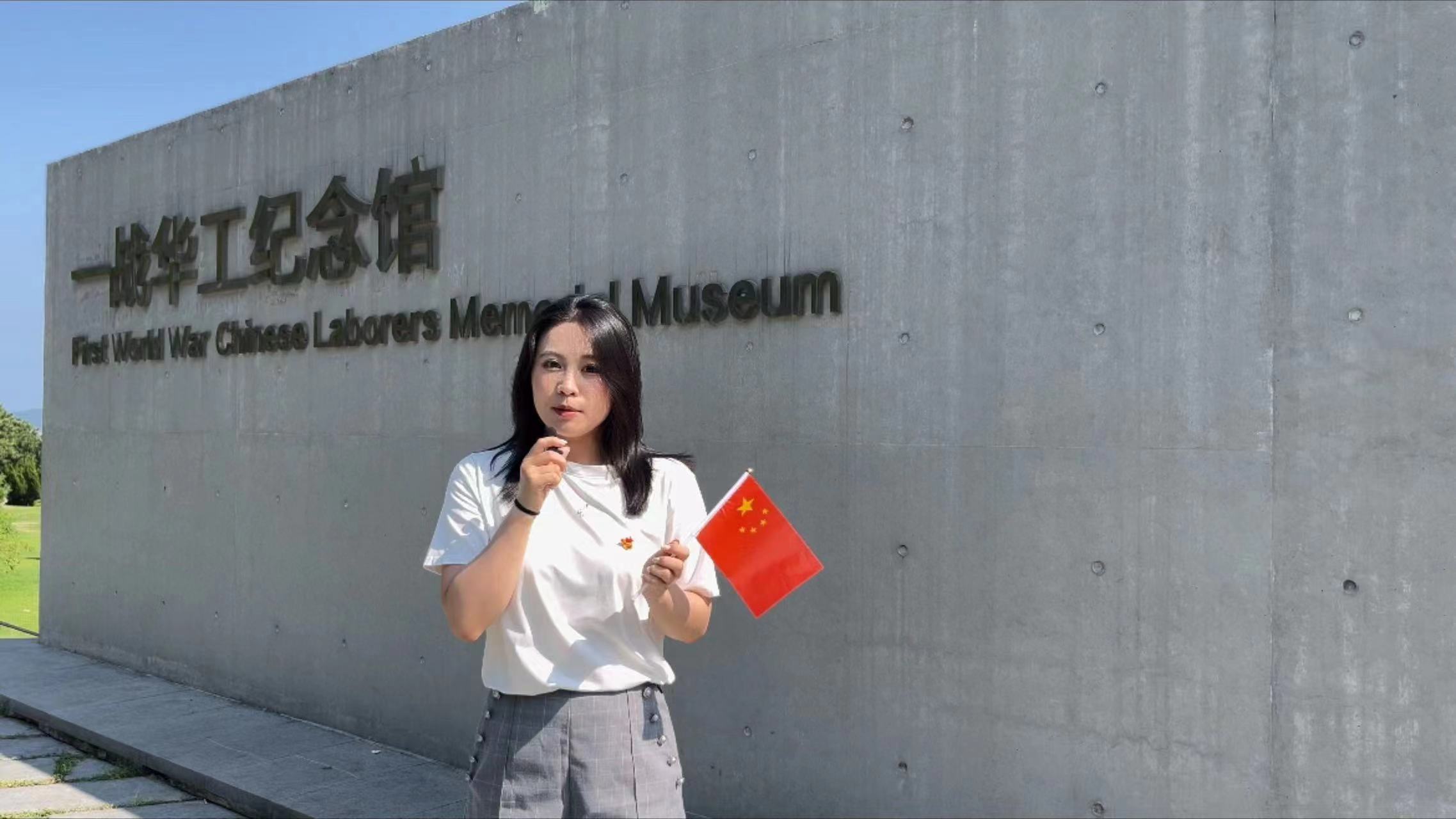 “艺术姐姐”于伊凡作为学生代表站在纪念碑前,为华工们献花默哀,表达对先辈们的深切缅怀。她向参观者讲述了华工们为国家和世界和平所作的巨大牺牲和贡献,使同学们深刻了解华工的历史与文化,激发对红色精神的无限敬仰。同时,她呼吁更多人走进这座纪念馆,亲身体验和学习那段波澜壮阔的历史,让红色基因在新时代绽放出更加璀璨的光芒,将这份宝贵的精神财富内化于心、外化于行,志存高远,不负时代的重托和人民期望,为实现伟大强国梦贡献力量。