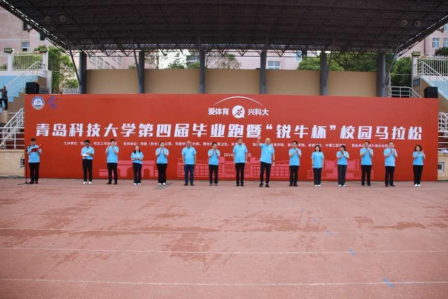 崂山校区迎来了盛大的“爱体育·兴科大”第四届毕业跑暨“锐牛杯”校园马拉松活动。学校党委领导班子成员陈克正、吕万翔、丁林、张洪坤、朱敬义、秦姣等2000余名师生参加此次活动。