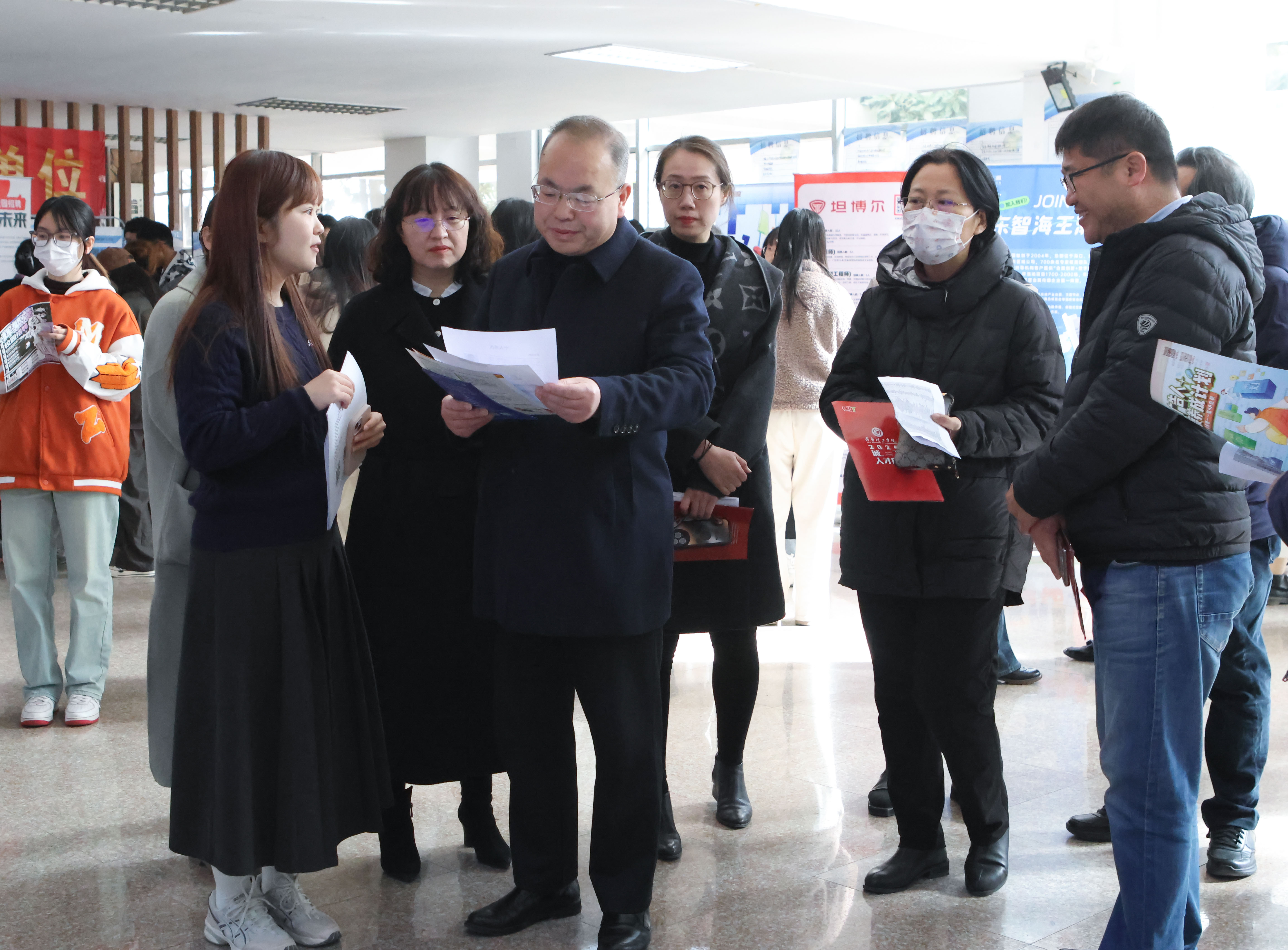 、传媒学院、外国语学院党政领导及教师代表参加招聘会,与用人单位针对就业形势、用人需求、企业科研发展等问题需求深入交流,助推毕业生更加充分更高质量就业。