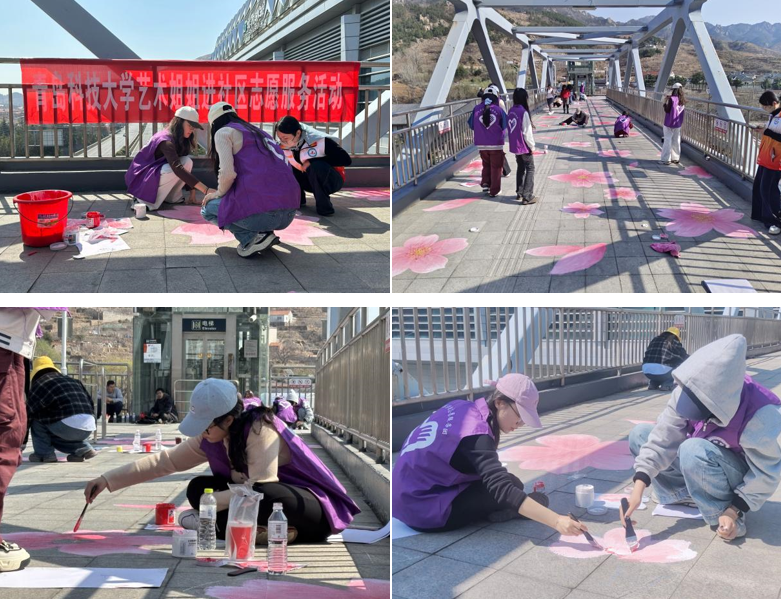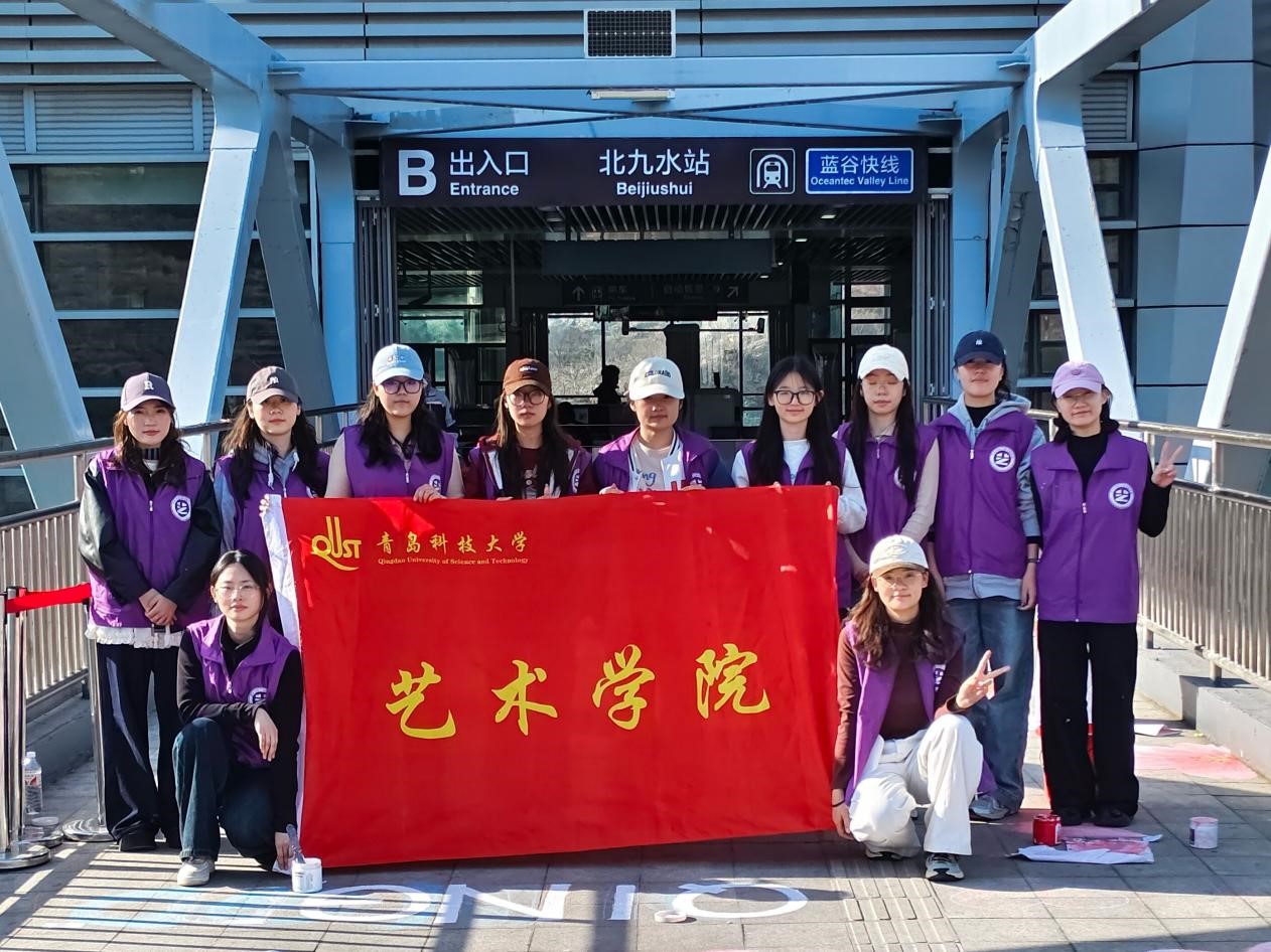 为迎接即将开幕的青岛市樱桃花节,近日,学院“艺术姐姐”志愿服务团队联合崂山区社会工作,前往青岛地铁北九水站开展“花漾步道”微景观美化志愿活动。以樱花为主题,通过手绘艺术装点地铁公共空间,为市民乘客打造出一条春意盎然的“樱花长廊”,助力城市节日氛围营造。