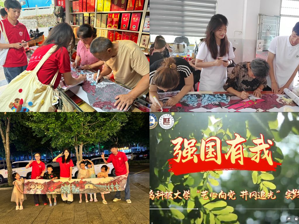 井冈山实践期间,团队成员以“百年井冈,艺脉传承”为主题,发起共绘十米长卷活动,广泛邀请井冈山当地老乡、少年儿童共同执笔,在十米长的画卷上倾情描绘井冈山革命根据地成立近百年来的光辉历史与不朽精神。老乡们欣然提笔,在画卷上留下质朴而真挚的笔触,并为年轻的团队成员们讲述亲历和口耳相传的红色故事;小朋友们热情参与,为长卷涂上活泼生动的色彩,与哥哥姐姐们进行着年轻一代的对话。共绘百年井冈的过程让共创者触摸到了历史的温度,牢记伟大祖国一路走来的艰辛道路,是一场生动的爱国主义教育实践课。此外,实践团师生精心策划录制《强国有我》MV,在井冈山各大红色景点取景拍摄,让最响亮的时代强音在革命摇篮井冈山传唱。