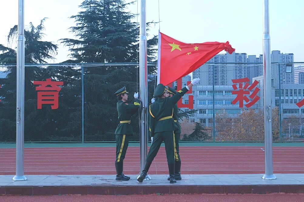 党委副书记兼副院长丁一宁致辞。她指出,在12月的第一天,两院携手举办升旗仪式,不仅是对国旗的崇高礼赞,更是对“一二·九”精神的深情回溯与坚定传承。她带领现场师生回顾了一二·九运动中青年学生的爱国壮举,并鼓励两院学子以学科特色为纽带,将艺术的感性与数理的理性相融合,在专业学习中涵养家国情怀。