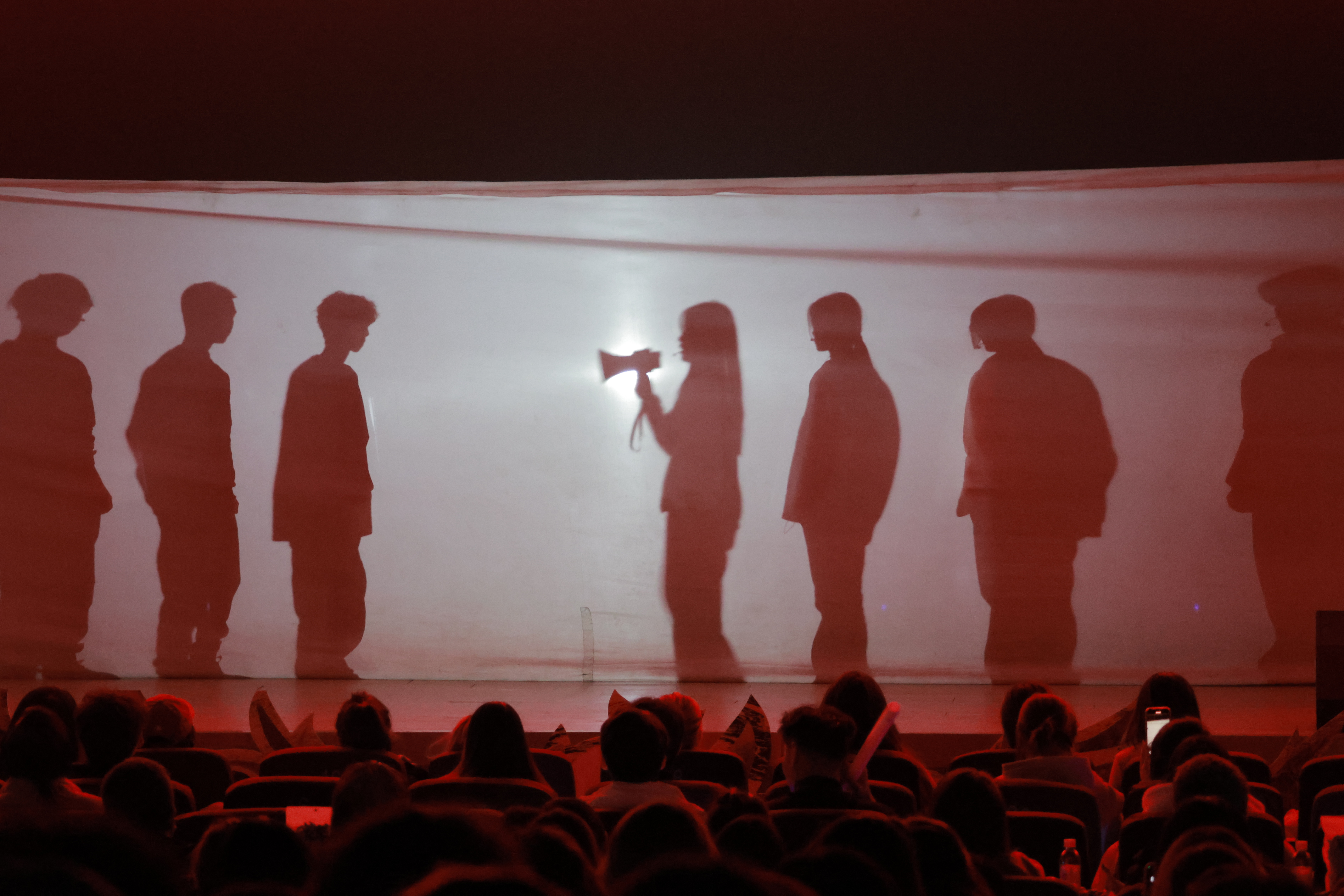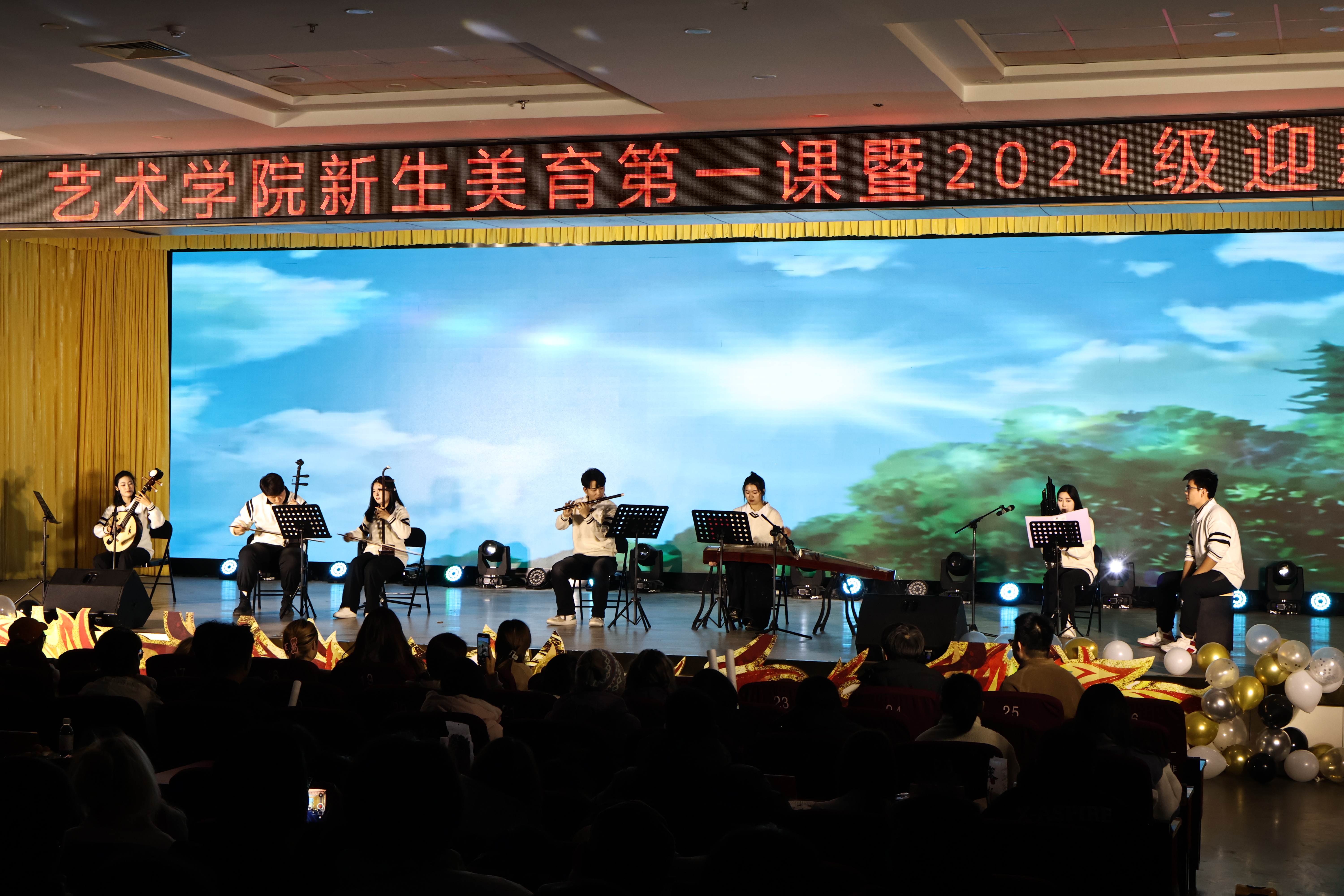 新生美育第一课暨2024年迎新晚会在崂山校区第二报告厅隆重举行。学生处副处长尤亭亭,校团委副书记李航,后勤处副处长周晓英,bangumi