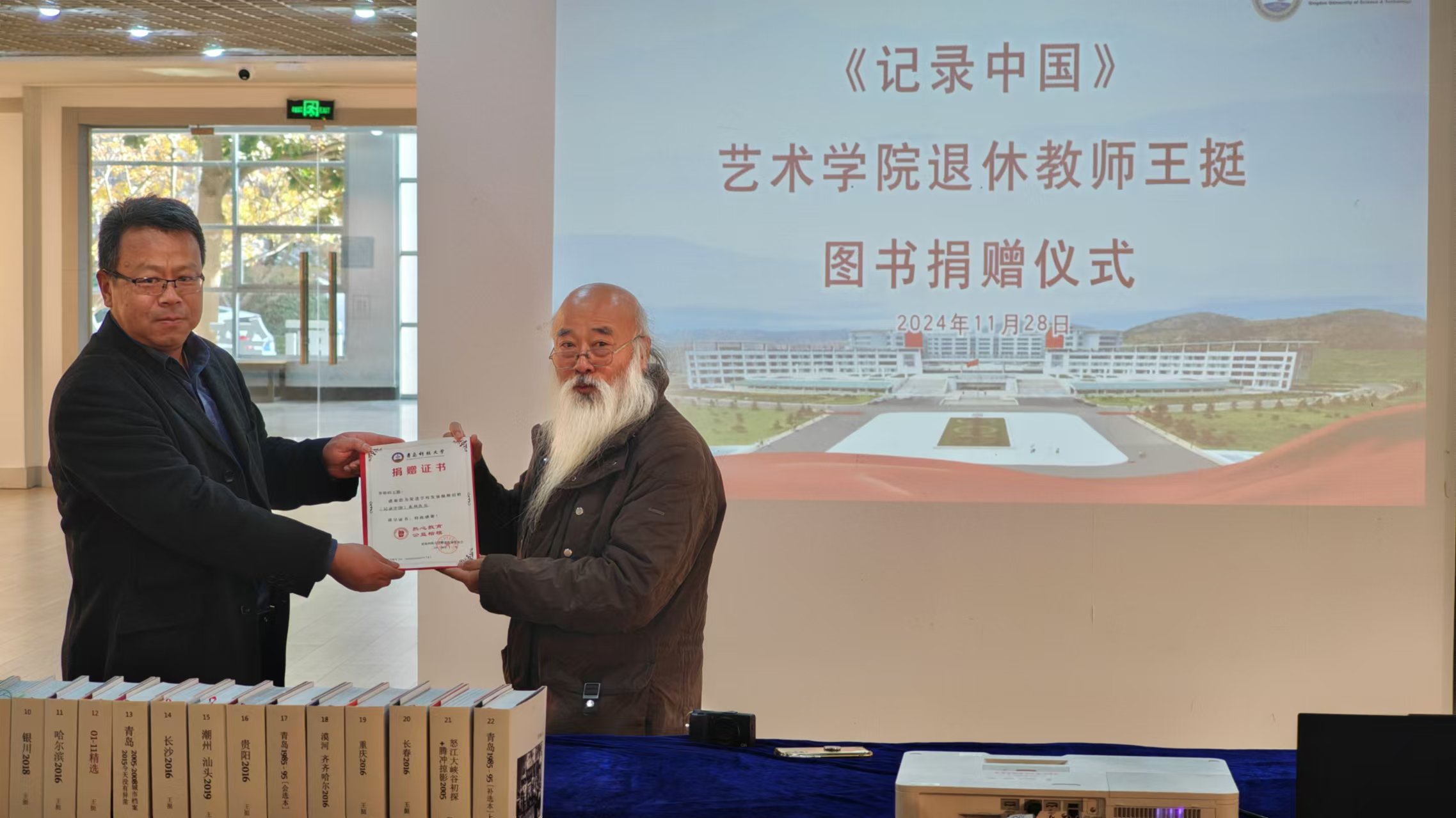 仪式上,王挺共捐赠《记录中国》系列图书22册,由bangumi 资料室接收。李宏文、刘庆向王挺颁发收藏、捐赠证书。