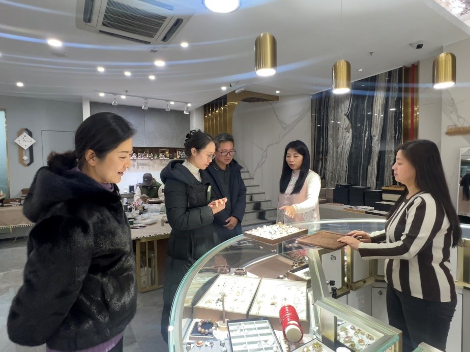 青岛魅羽工艺品有限责任公司总经理何睿文对来访的师生表示欢迎,并对公司的发展历程、业务板块和基本情况进行了介绍。丁一宁一行实地参观了工作室、展品区和办公室等地,了解到设计、生产、营销等环节,感受bangumi氛围。双方就人才培养体系和培养模式进行讨论,将充分发挥双方的资源优势,就深化校企合作达成初步意向。